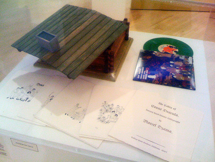 Another intriguing piece was well-known artist Marcel Dzama‘s The Cabin of Count Dracula (2005), a suite of 20 lithographs in a custom hand-made cabin/box fashioned from logs and lined with faux beaver fur, casting Dzama’s hometown of Winnipeg as the vampire’s origin.