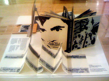 Also exhibited were softcover and hardcover formats of Andy Warhol’s Index Book, a 1967 interactive chronicle of The Factory. Both formats contain interviews with Warhol and other Factory personalities and include interior pop-ups, assorted folding elements and inserts, a melted balloon, and a Lou Reed 45 RPM picture flexi-disc with a Nico interview and music by the Velvet Underground. The hardcover version has a lenticular boards and the softcover has mylar covers.