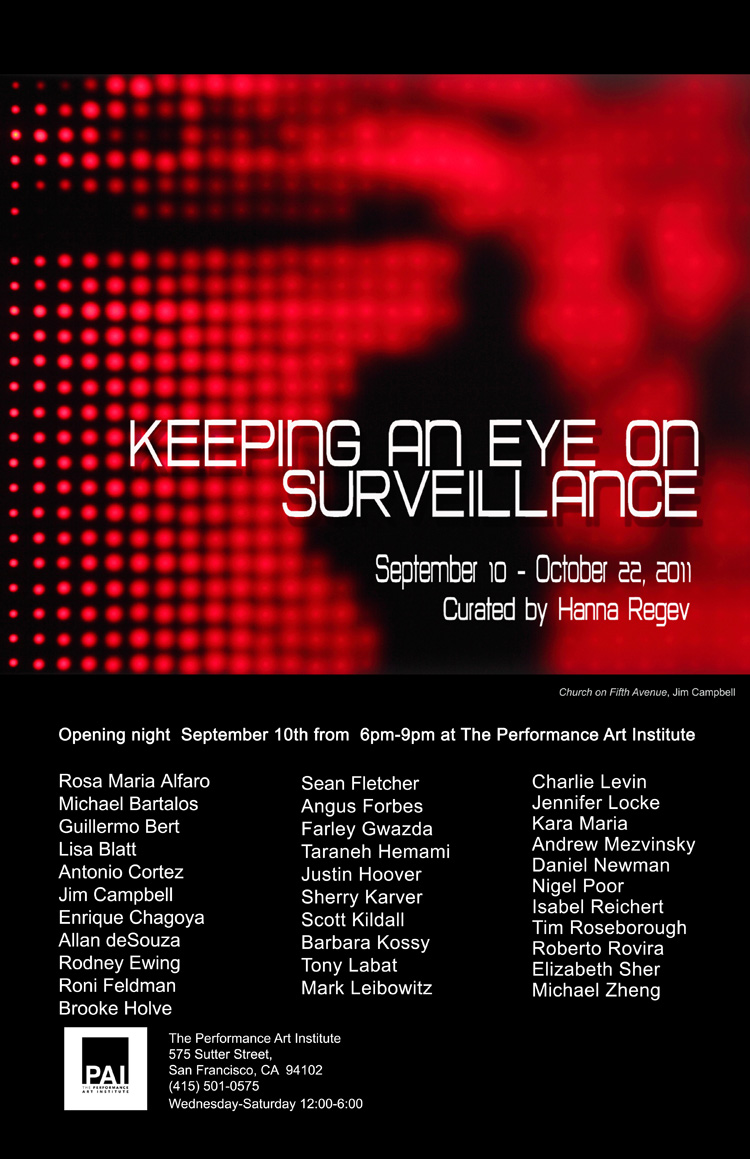 Participating artists: Rosa Maria Alfaro, Michael Bartalos, Guillermo Bert, Lisa Blatt, Jim Campbell, Enrique Chagoya, Antonio Cortez, Allan deSouza, Rodney Ewing, Roni Feldman, Sean Fletcher, Angus Forbes, Farley Gwazda, Taraneh Hemami, Brooke Holve, Justin Hoover, Sherry Karver, Scott Kildall, Barbara Kossy, Tony Labat, Mark Leibowitz, Charlie Levin, Jennifer Locke, Kara Maria, Andrew Mezvinsky, Daniel Newman, Nigel Poor, Isabel Reichert, Tim Roseborough, Roberto Rovira, Elizabeth Sher, and Michael Zheng. Curated by Hanna Regev.