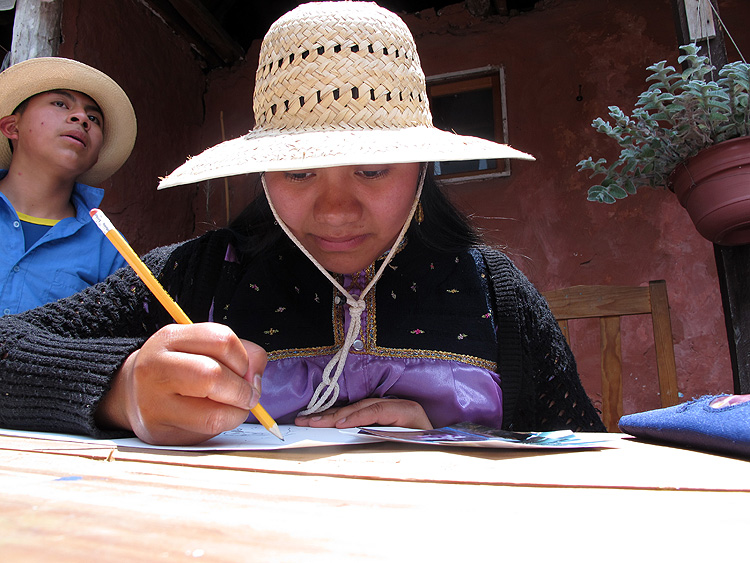 This year we offered three sets of tallers: drawing and watercolors for the indigenous Mayan jungle community of Lacanjá; mural painting with La Casa de las Flores in San Cristóbal de las Casas, and drawing and watercolors with Club Balam, also in San Cristóbal.