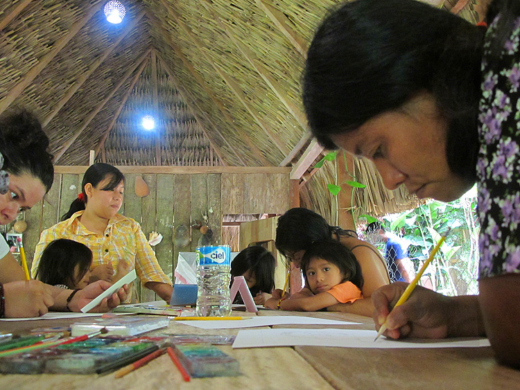 Again, we started by photographing each participant in a setting of their choice and printing the pictures on the compact printer for reference. The kids then described themselves and their environment through drawing, painting, and writing. Our objective was to encourage personal expression with which to amplify awareness and appreciation for the local habitat.