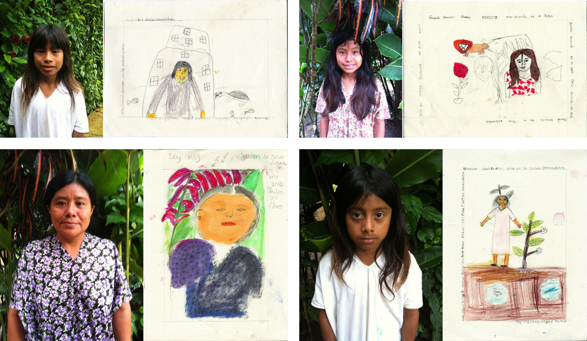 Many featured themselves prominently in the artworks, adding words about their favorite plants and animals. Others rendered themselves as diminutive figures in dominant landscapes. Others still represented themselves as jungle creatures. Regardless of approach, the Lacandon habitat significantly shaped each portrait.